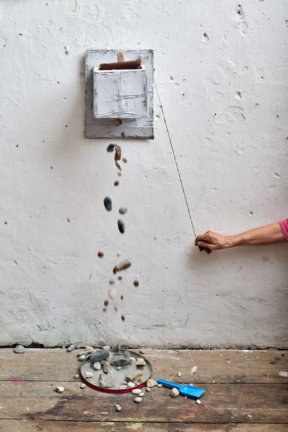 Rosa Maria Krinner, „Afgramd is!“, 34 x 19 x 18 cm, Pappe, Holz, Blech, Farbe, Steine, 2022, Foto: Siegfried Wameser